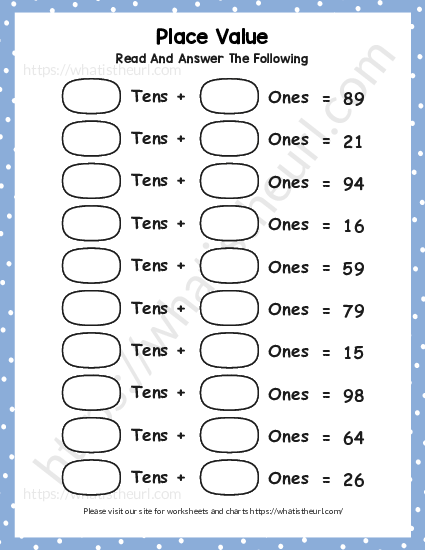 It is a simple worksheet for Grade 1 kids. It can help the kids the position of tens and ones in numbers. The PDF has 5 pages. Please download the PDF Place Value Tens and Ones Worksheet – Exercise 5
